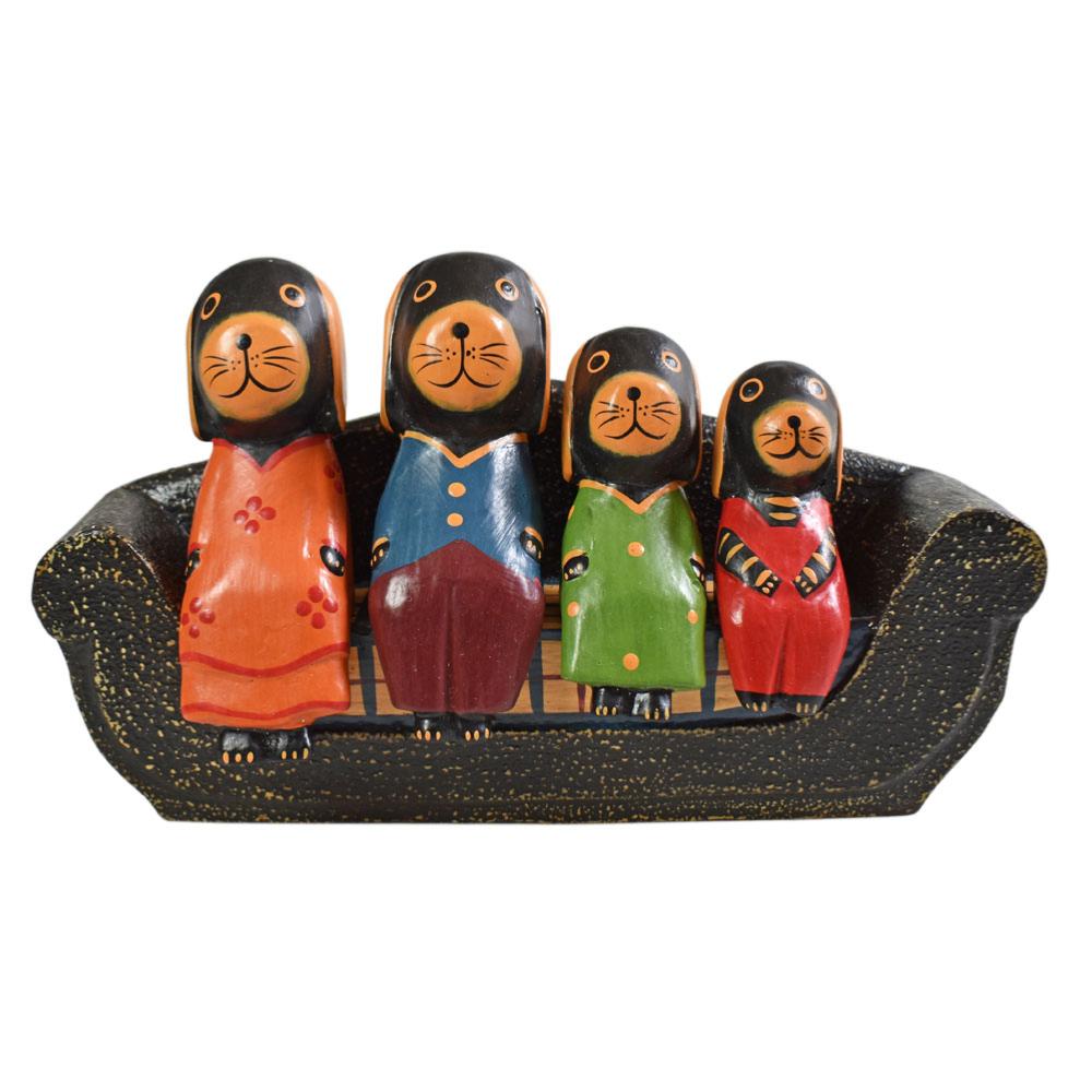 • 4 Dogs on a sofa hand carved Albesia wood, 21.5 x 10 x 6cm