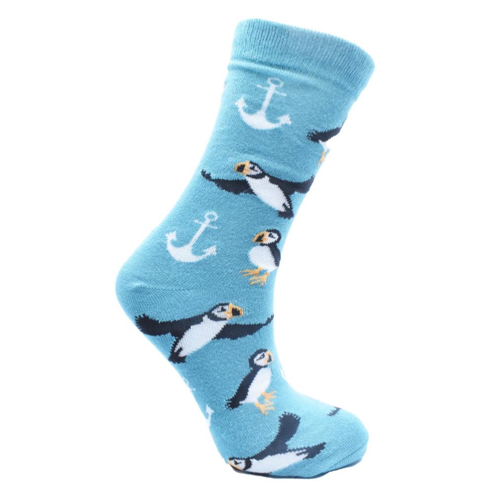 Bamboo Socks Puffins and Anchors Shoe Size UK 3-7 Womens