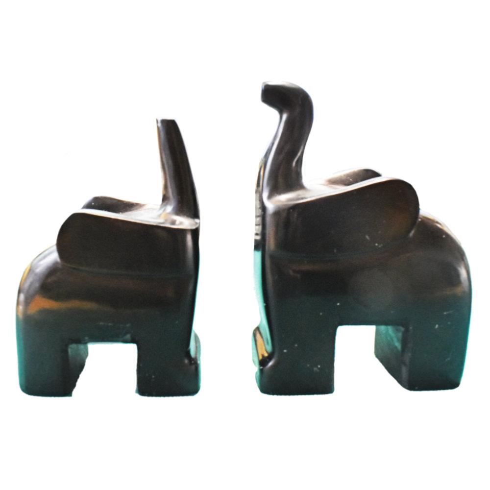 These beautifully hand carved soapstone bookends will enhance your bookcase or shelf. Each is in the shape of a elephant, carved with great attention to detail.