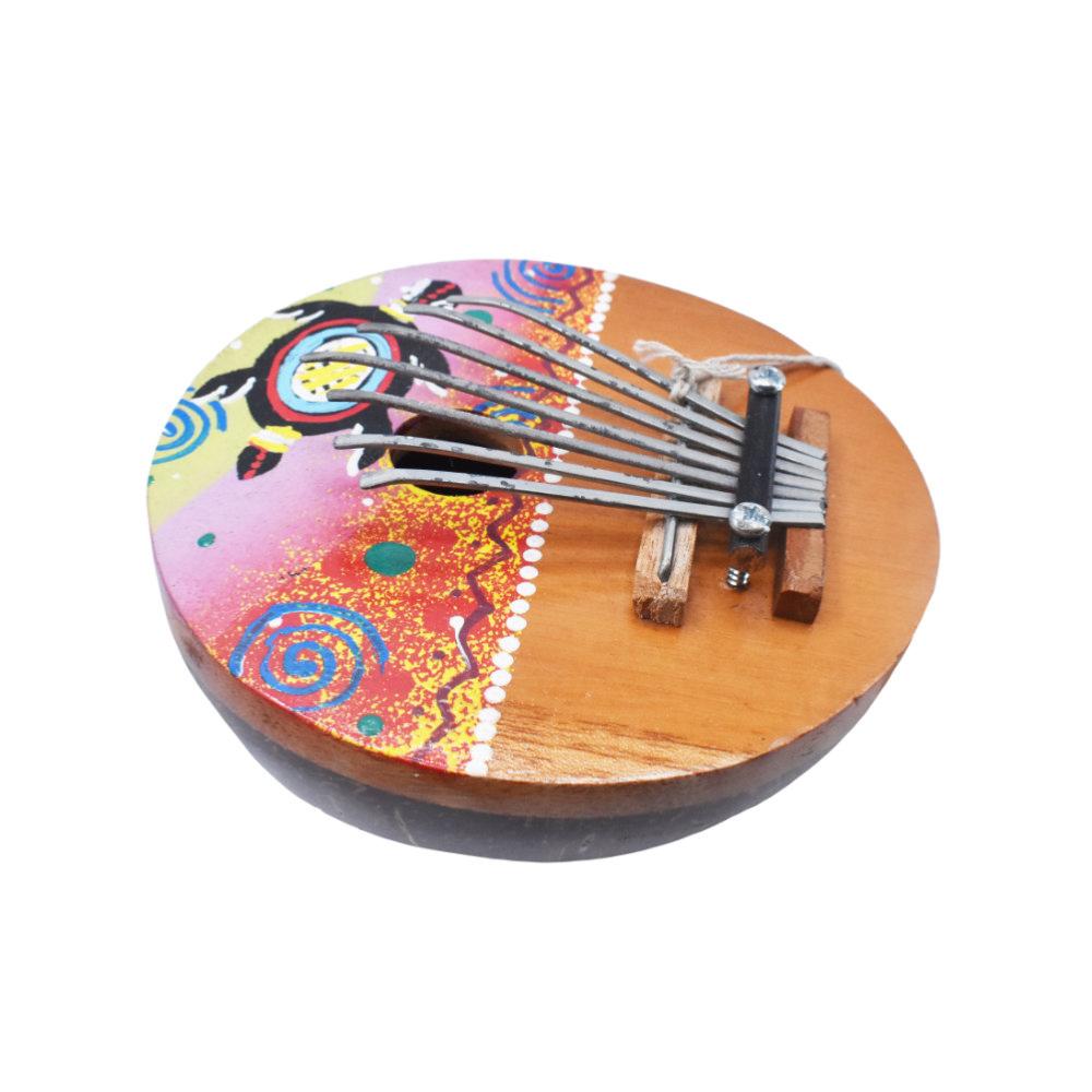 Thumb piano made from coconut shell, a great use for a material which otherwise just goes to waste.