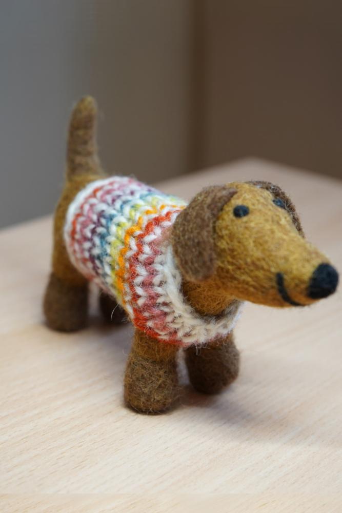 Hand felted wool home ornament. A perfect gift for Dachshund lovers and Sausage Dog owners. Fair Trade & Handmade in Nepal.