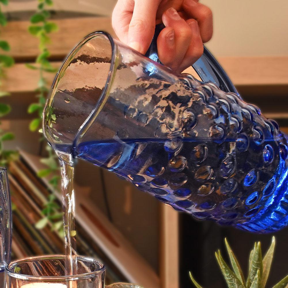 Jug made from blue tinted recycled glass
