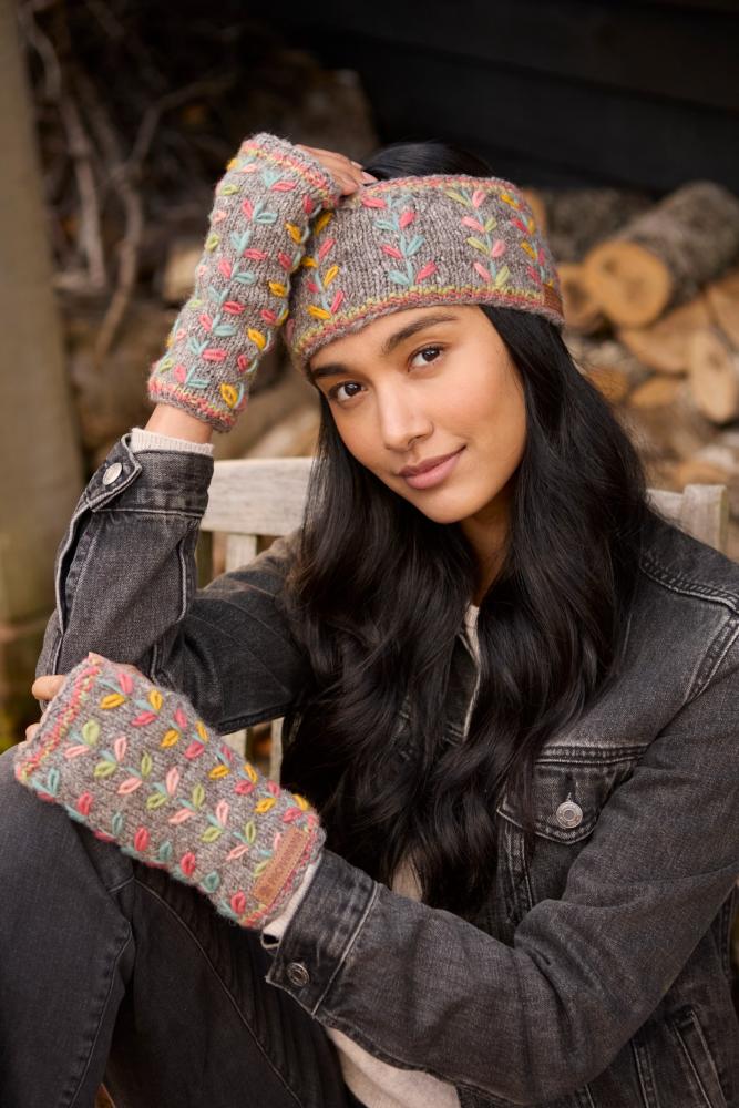 These Kylemore fingerless gloves are beautifully embroidered with simple leaf patterns inspired by nature. They are handknitted in wool in autumn hues and hand crafted with care. The fleece lining is sure to keep you warm and cosy.