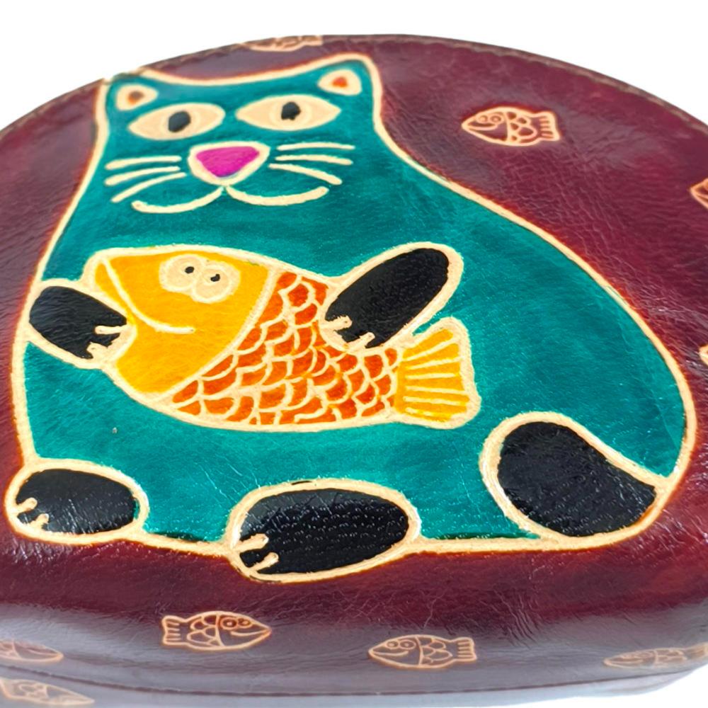 Leather Purse Cat with Fish 14x9cm