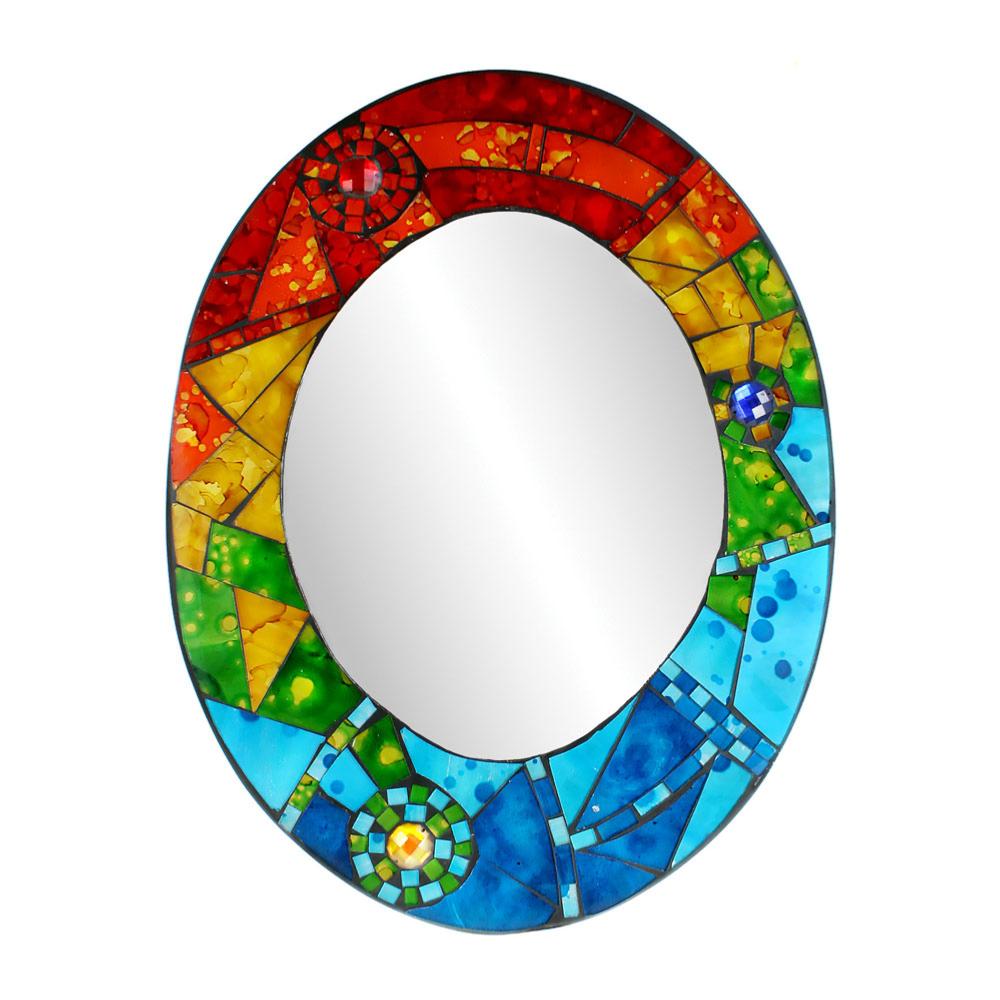 Oval mosaic wall mirror rainbow colours handmade 40x31cm