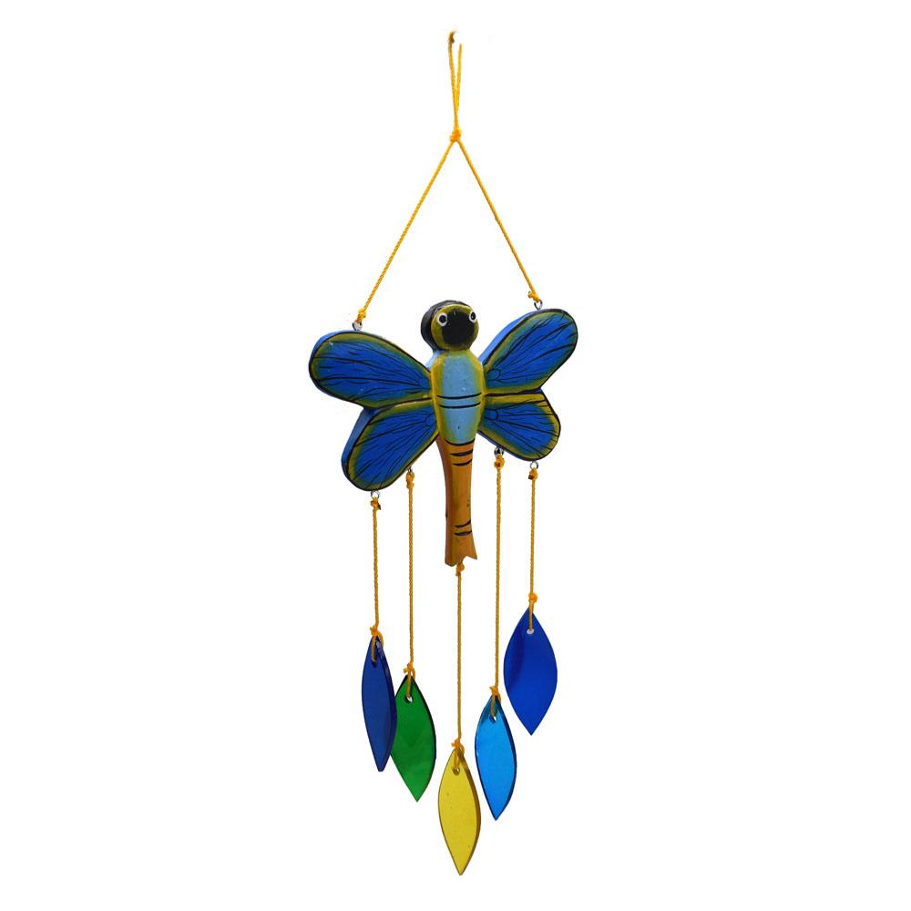 Mobile, recycled glass + wood, dragonfly with teardrops on strings multicoloured