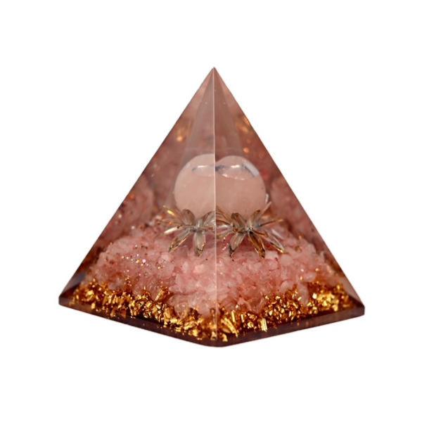 Orgone pyramid rose quartz with rose quartz lotus sphere