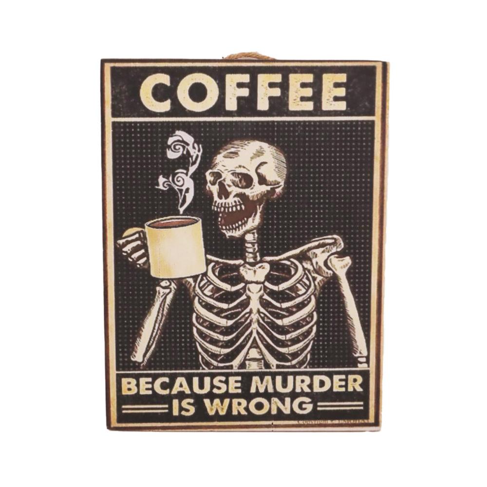 Plaque Albesia Wood Coffee Because Murder is Wrong 15 x 20cm
