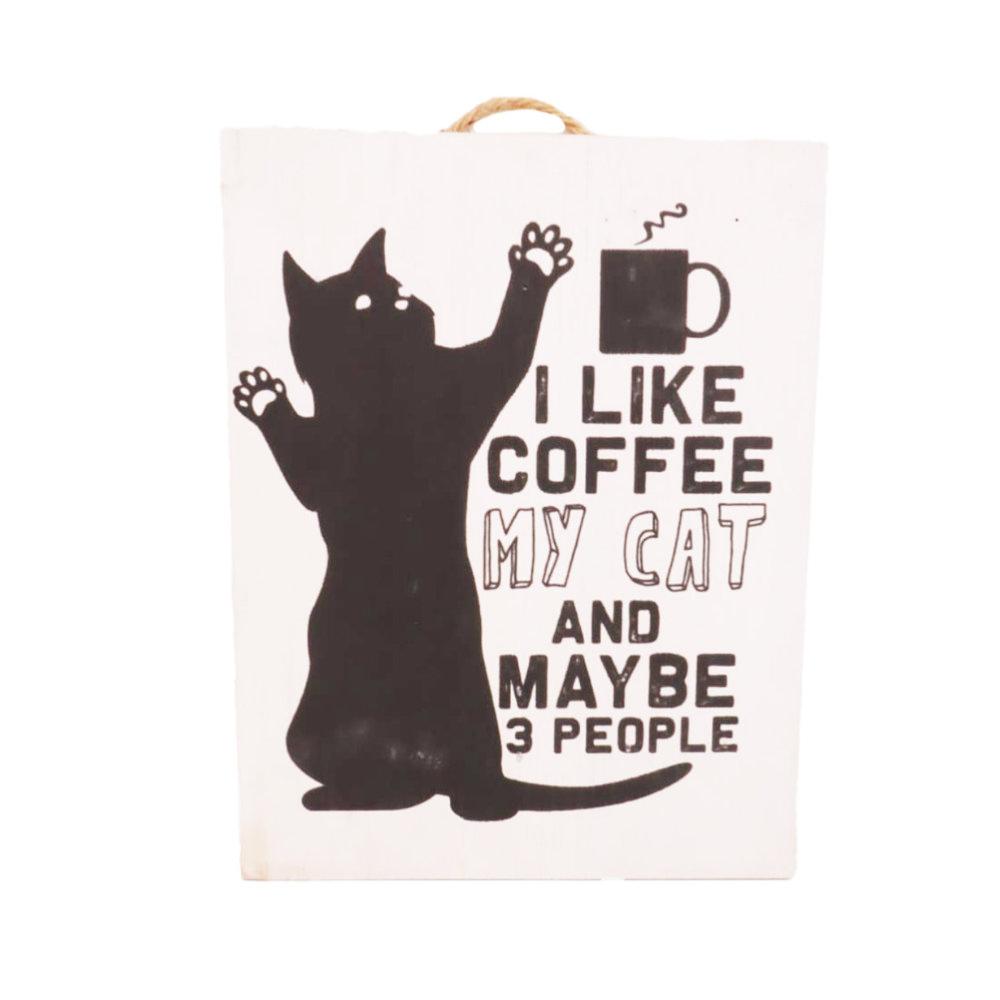 Plaque Albesia Wood I Like Coffee My Cat 15 x 20cm