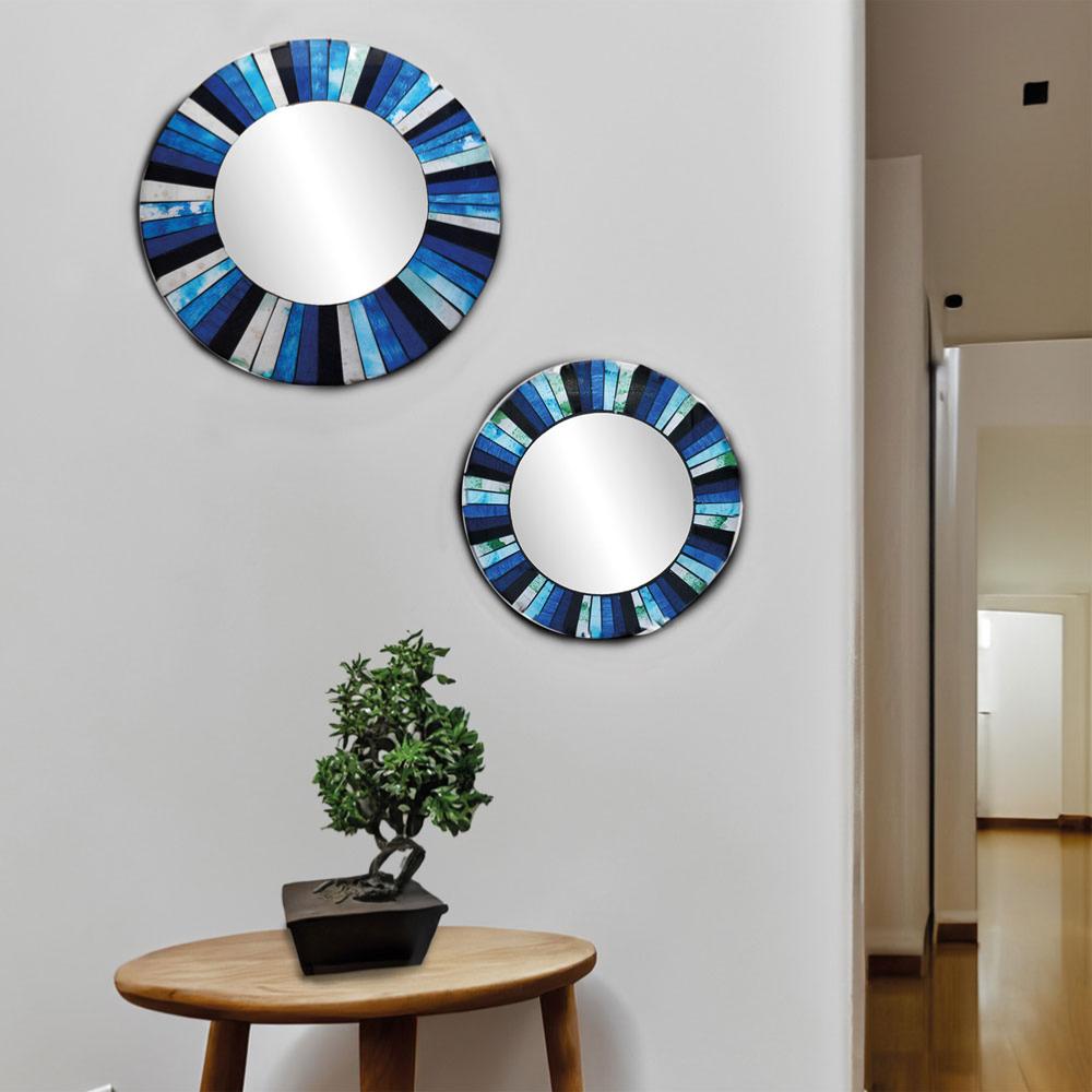 • Round mirror, recycled glass mosaic blues 50cm diameter