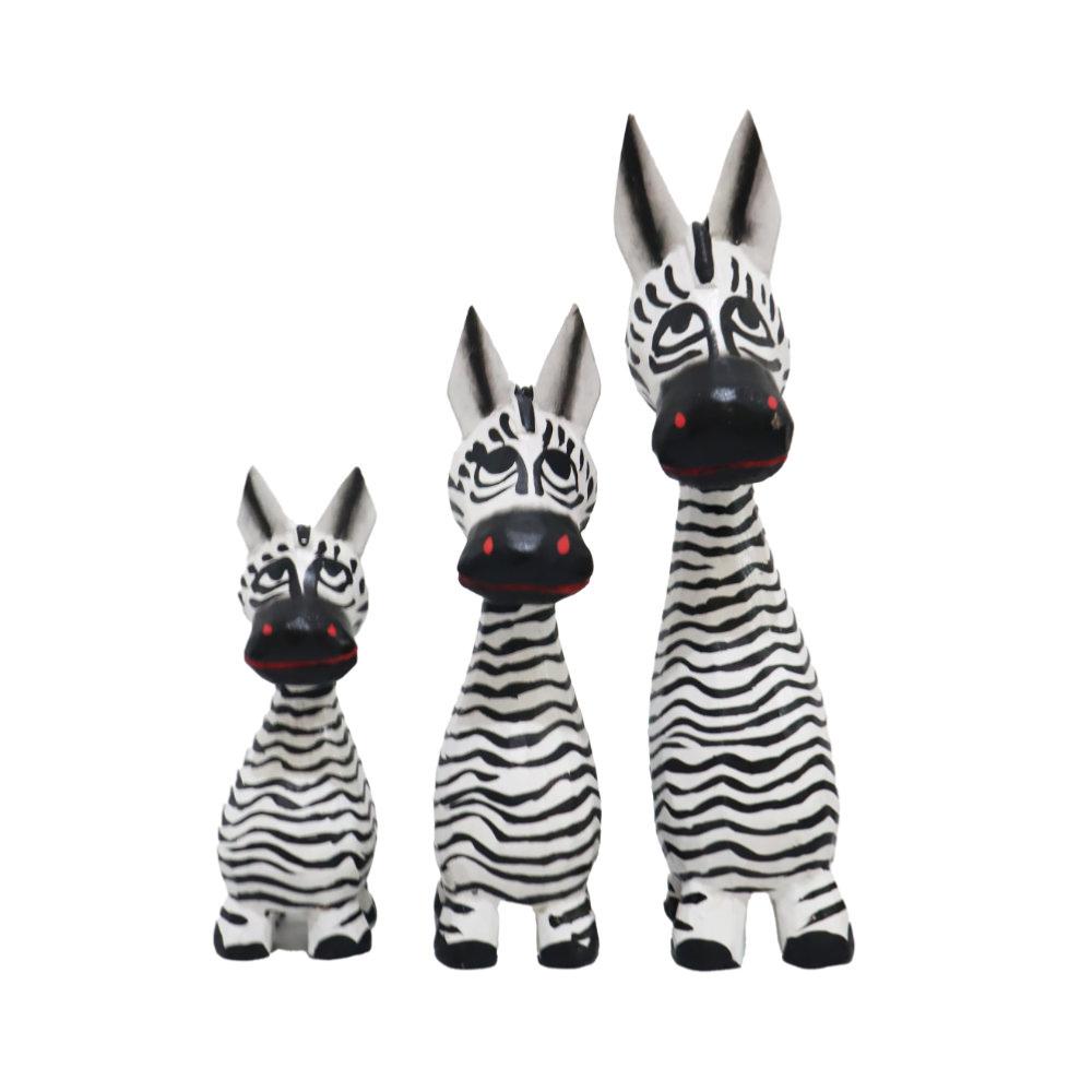 This set of 3 zebras has been beautifully hand-carved and painted, showing off intricate patterns.