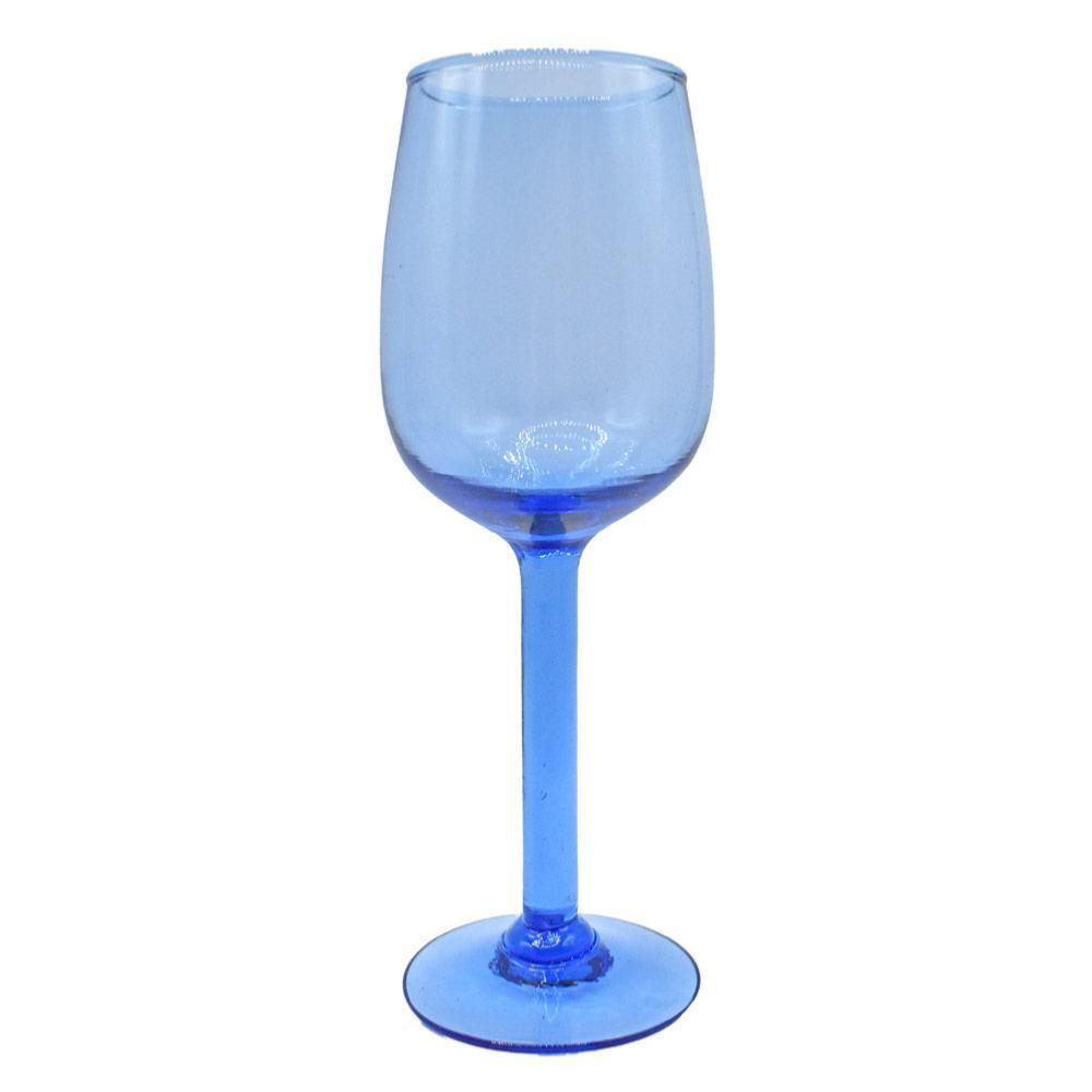 Single Wine Glass Recycled Glass Blue Tinted, 21cm height