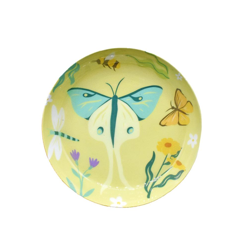Trinket Dish / Tray Metal Insects and Flowers 9.5cm diameter
